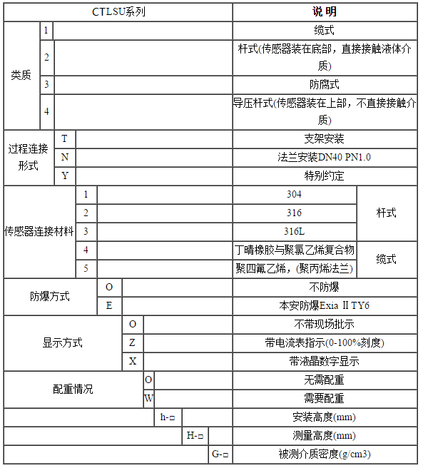 四、投入式液位變送器選性表