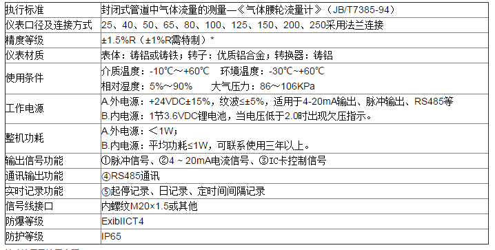 三、天然氣氣體羅茨流量計(jì)技術(shù)性能指標(biāo)