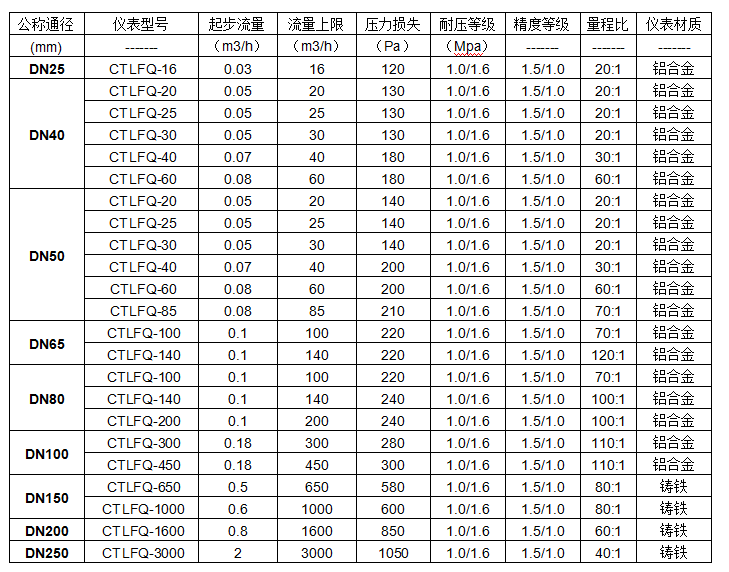 ■始動(dòng)流量小,量程比寬,適合于計(jì)量符合變動(dòng)大的氣體流量。