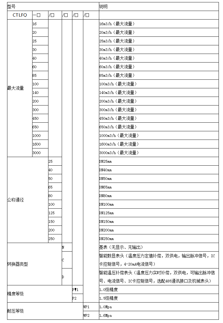 儀表選型(請(qǐng)先參考‘3.3始動(dòng)流量及流量上限’表格)
