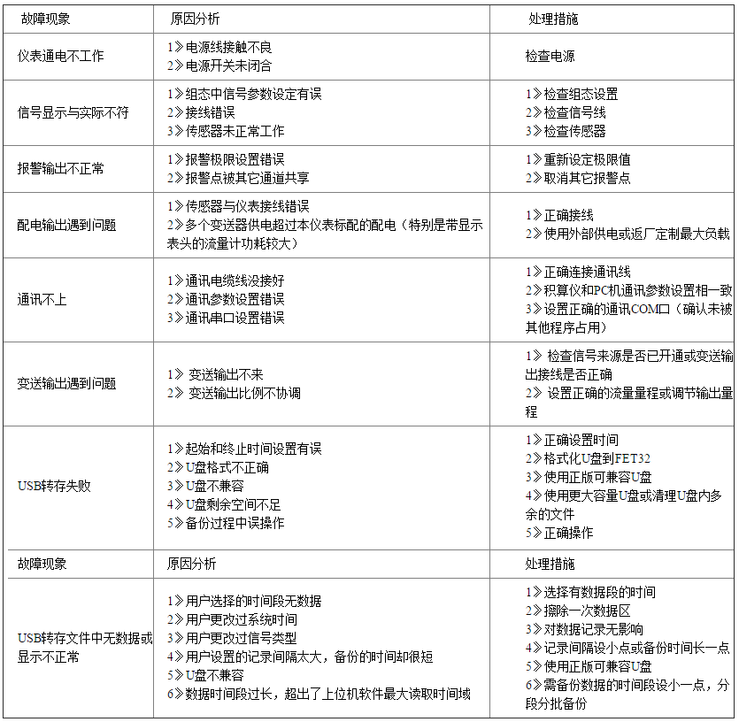 表1是流量積算記錄儀在日常應(yīng)用中的幾個(gè)常見故障: