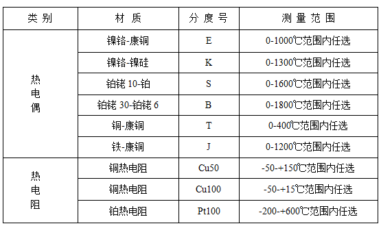 1、輸入信號:熱電偶:K、E、J、B、S、T、N。熱電阻:Pt100、Cu50、