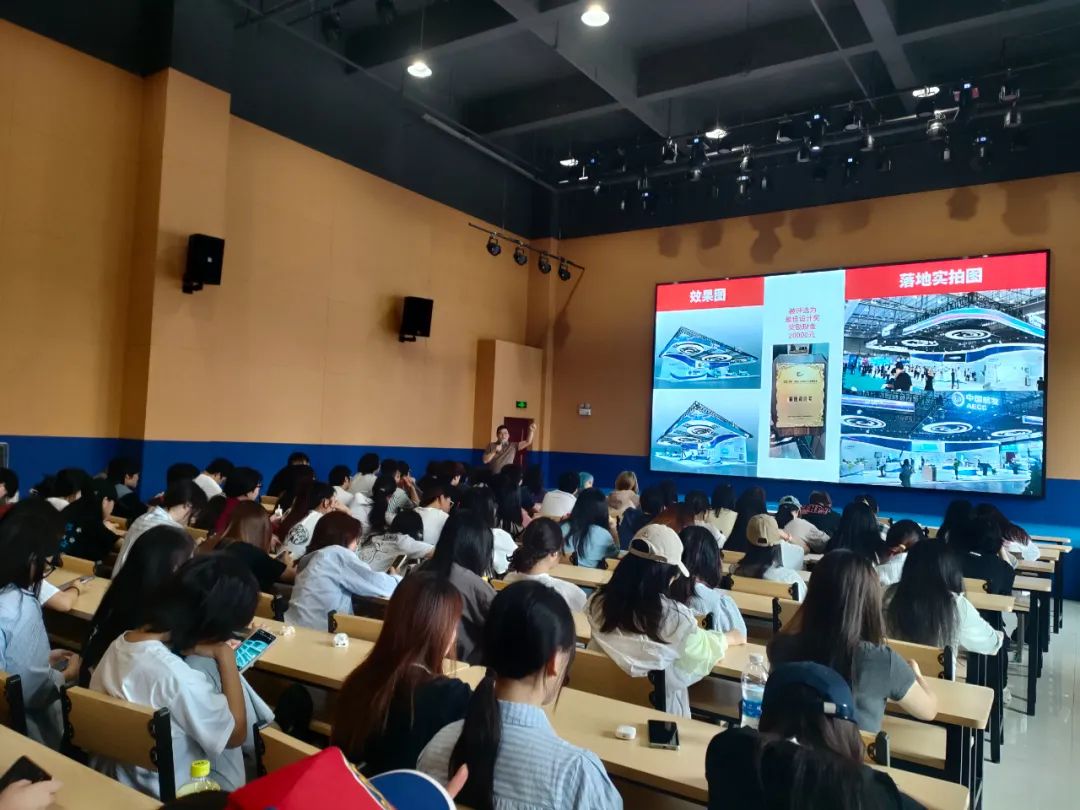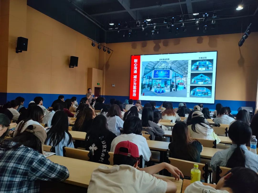 緊接著,是會展設計的經(jīng)驗和案例分享,用他豐富的實戰(zhàn)經(jīng)驗和一個個生動的案例,將我們帶入了一個又一個精彩絕倫的會展世界。從項目策劃到設計執(zhí)行,從創(chuàng)意構(gòu)思到細節(jié)打磨,每一個項目背后都凝聚著的專業(yè)素養(yǎng)和對品質(zhì)的堅持。魯老師的分享,讓在場的每一位同學都學習到了,專業(yè)的會展設計師,應該具備怎樣的職場素養(yǎng)。